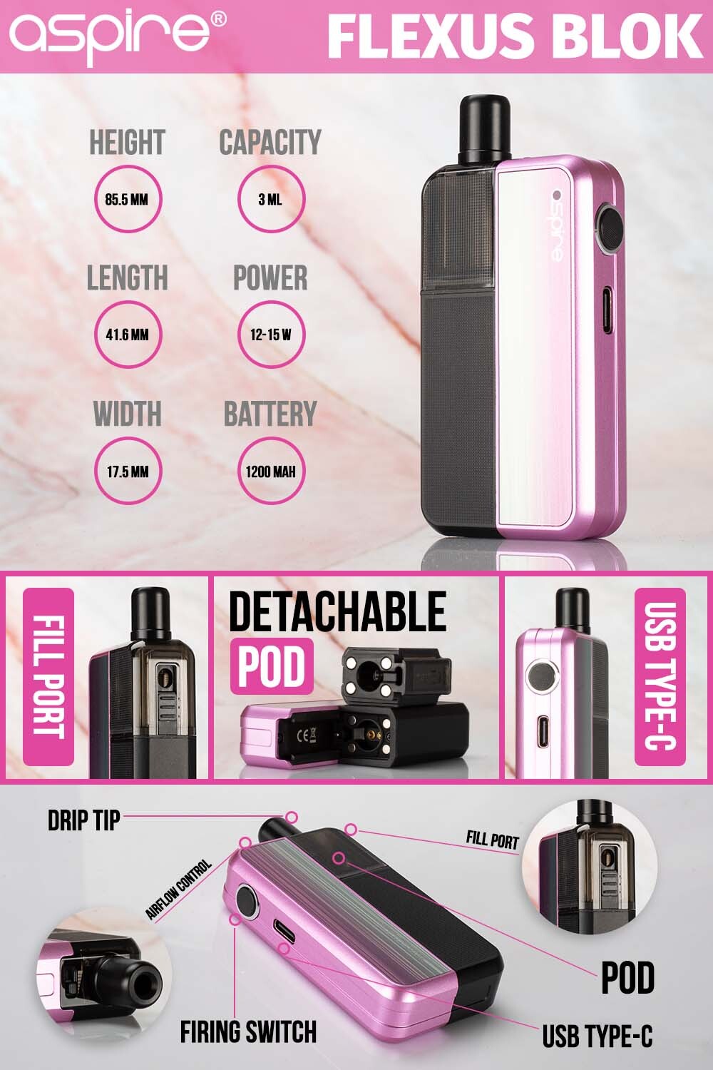 Check out the Aspire FLEXUS BLOK Pod System, featuring an integrated 1200mAh battery, 12-18W output range, and holds up to 3mL of eJuice or nicotine salts. Constructed from durable zinc-alloy, the chassis of the FLEXUS BLOK delivers a portable and slim form factor. Encapsulating an integrated 1200mAh battery, the FLEXUS Blok Pod System allows for all-day vaping, allowing for up to 18W of deployable power. Working in conjunction with the AF Mesh Coil Series, the FLEXUS BLOK Pod System works off a draw or button activated firing mechanism. Outputting in a three tiered power level system, the FLEXUS Blok creates decadent vapor at a moment's notice and will captivate the taste buds.