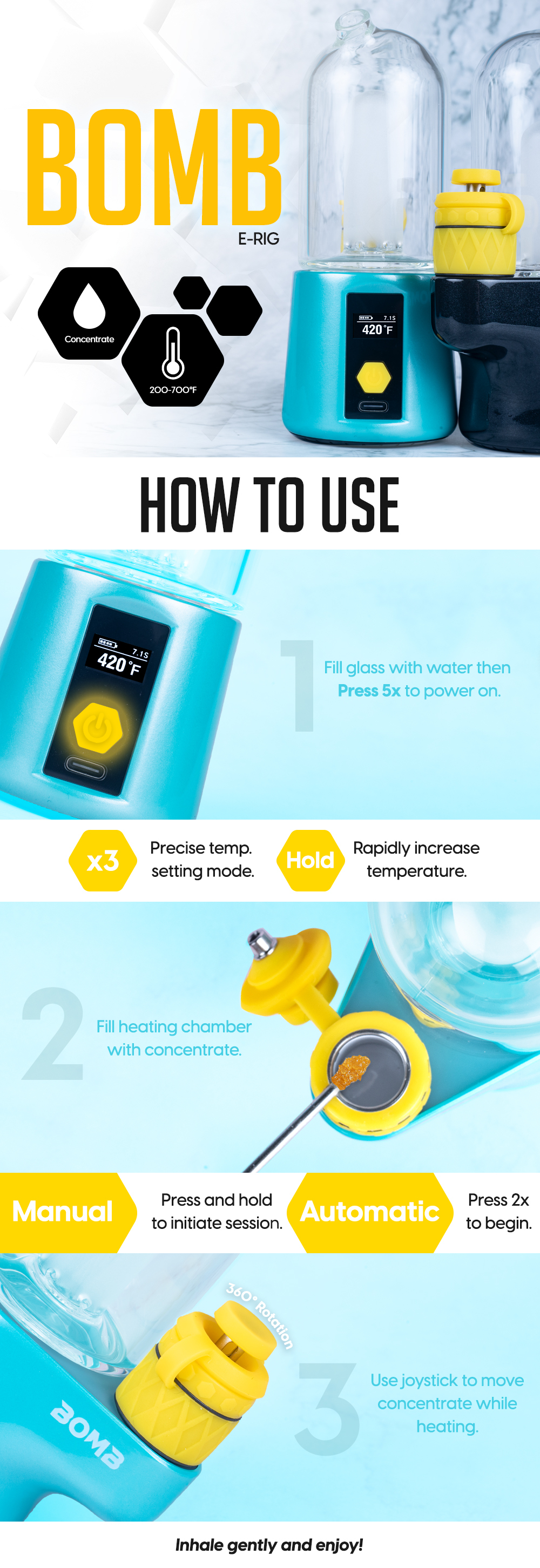 Check out the Sykloud Bomb E-Rig, combining a 3D 360° sidewall heating atomizer, a 200°-700°F output range, and delivers exceptional flavor from your favorite concentrates. Equipped with a 360° sidewall heating, the Sykloud E-Rig can deliver exceptional flavor and vapor from your favorite concentrates. Carefully offering precision temperature control, the Sykloud Bomb Rig can deliver between 200-700°F, perfect for those who enjoy low-temperature dabs packed full of flavor or lung-busting high-temperature dabs. Outfitted with a 22mm deep ceramic atomizer, the Sykloud Atomizer is great for globs or giant dabs, offering plenty of real estate for all-around heating and vaporization.